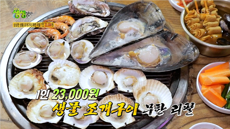 생생정보 가격파괴 Why 싱싱한 생물 조개구이 무한리필 1인 23,000원